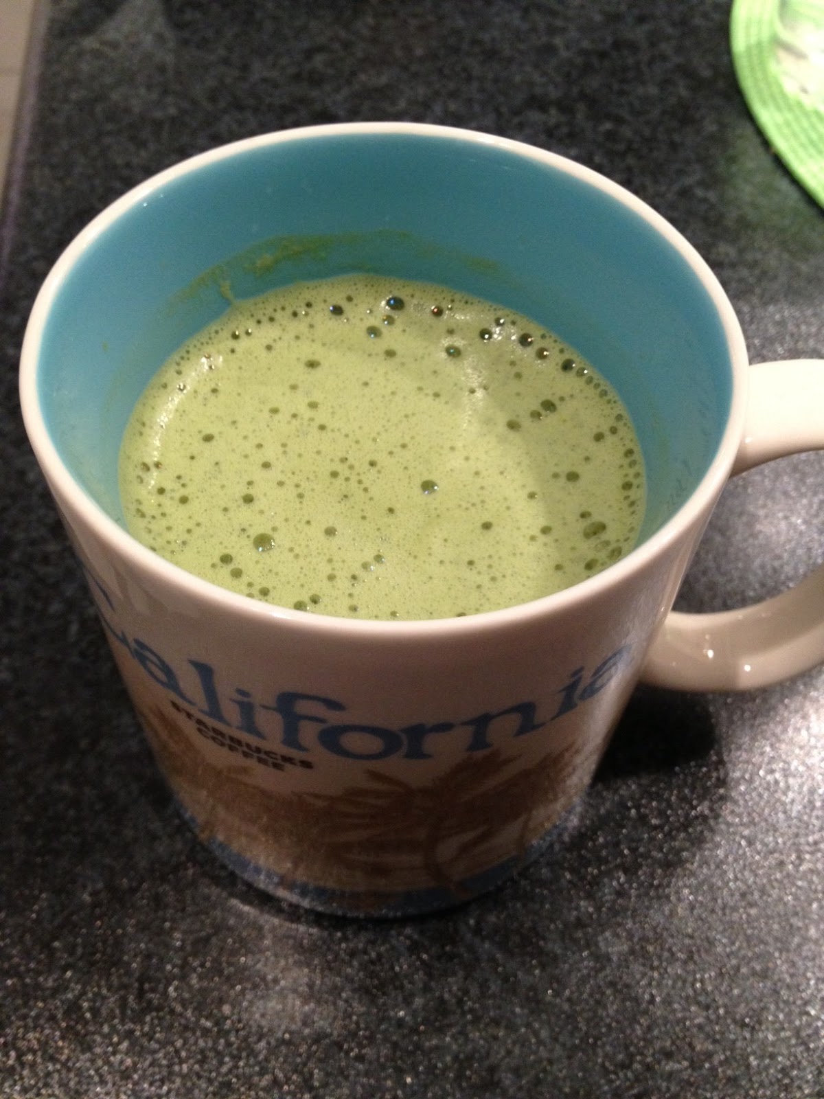 | Matcha Latte mit aufgeschäumter Mandelmilch |
