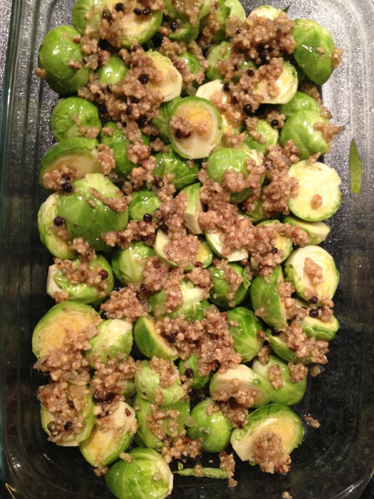 Heute gibt es Rosenkohl mit Walnuss-Crumble und dazu gebratene Süßkartoffeln.