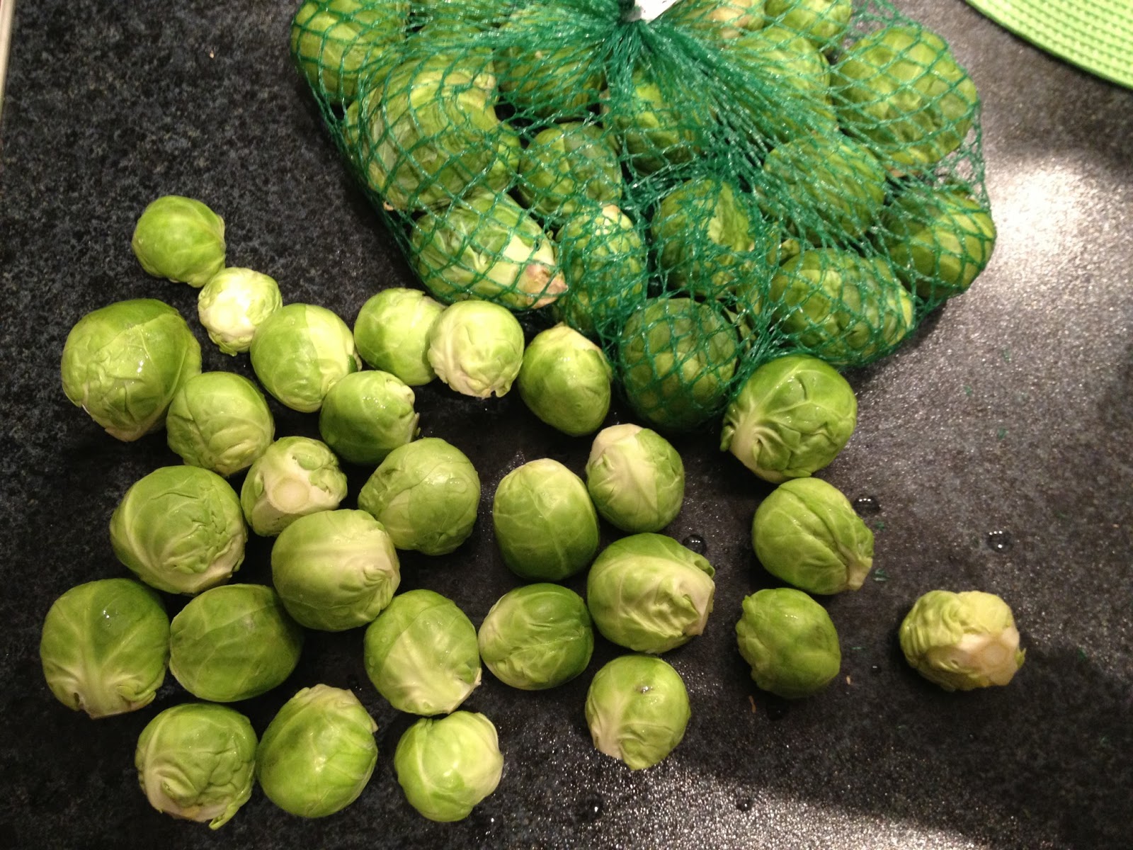 - Von den Rosenkohl-Röschen die äußeren Blätter abzupfen und die Röschen waschen.