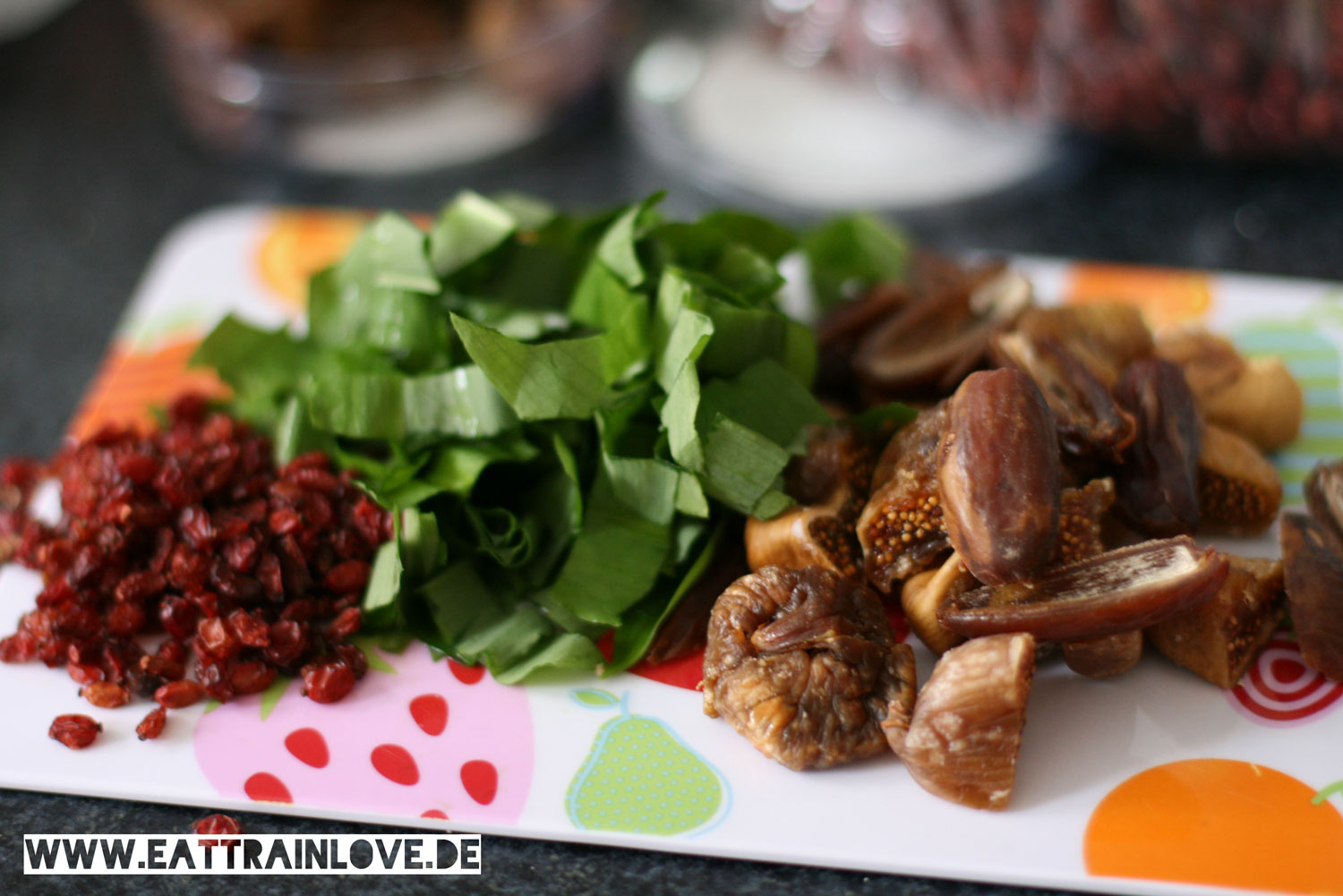 - In der Zwischenzeit halbiert bzw. viertelt ihr die Datteln und Feigen, hackt ihr die Bärlauch-Blätter klein und schneidet den cremigen Blue Cheese in mundgerechte Happen.