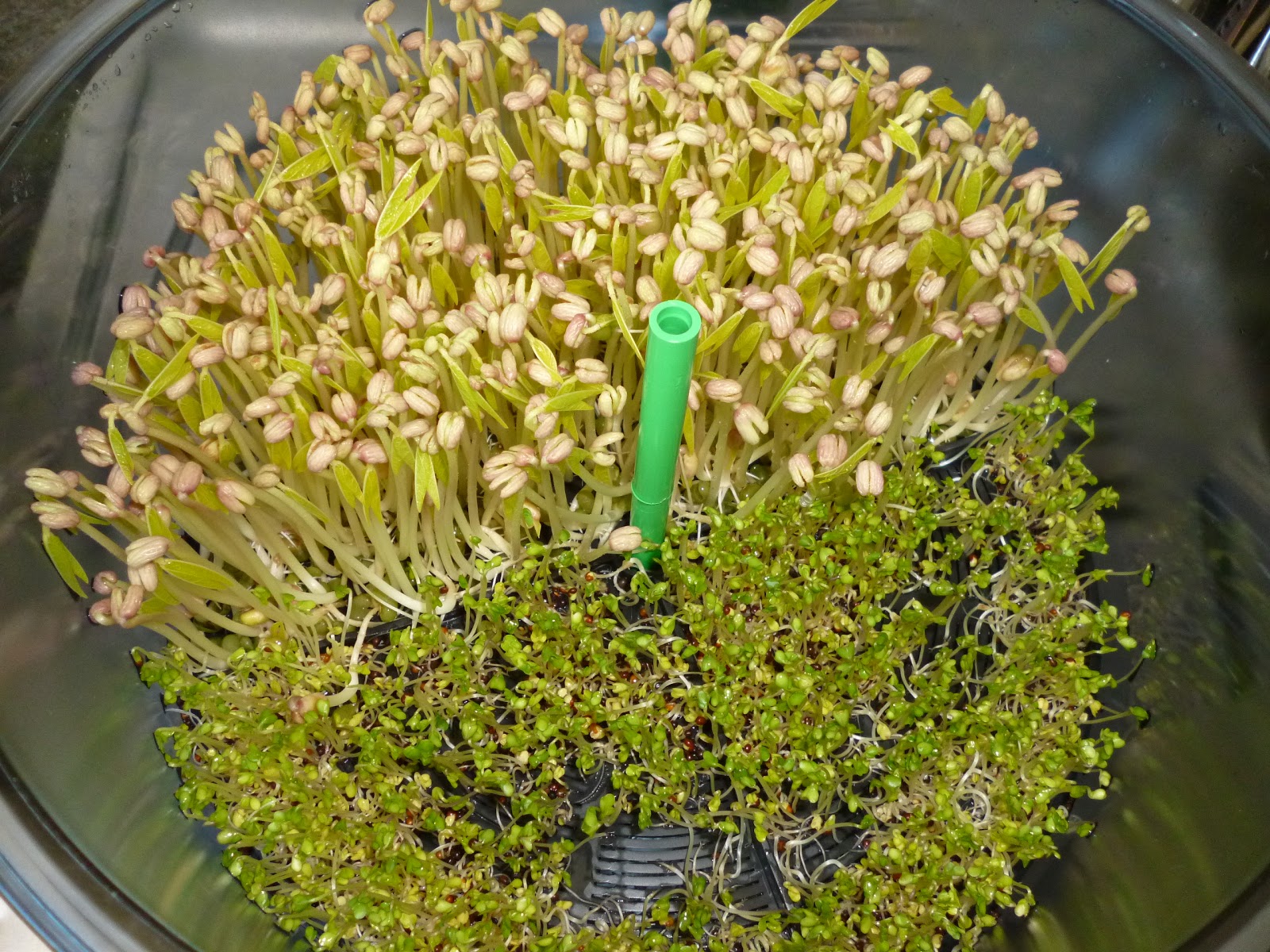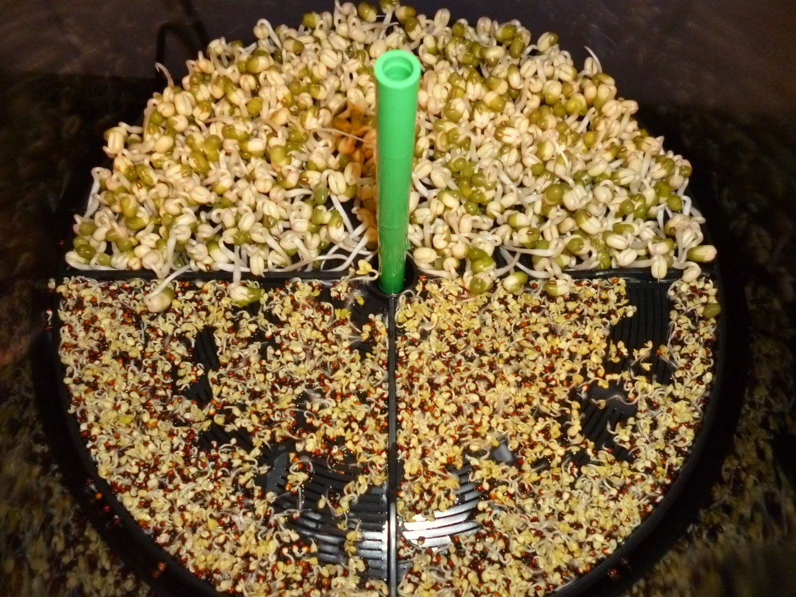 Ich habe mir für meine Sprossenzucht Mungobohnen-, Brokkoli- und Alfalfa-Keimlinge gekauft. Das Keimgitter ist relativ groß und bietet auch Platz für verschiedene Saat zur gleichen Zeit. Allerdings sollte man darauf achten, dass die Keimzeiten nicht zu weit auseinander liegen, sonst sind einige Sprossen schon erntefertig und andere müssen noch ein paar Tage wachsen.